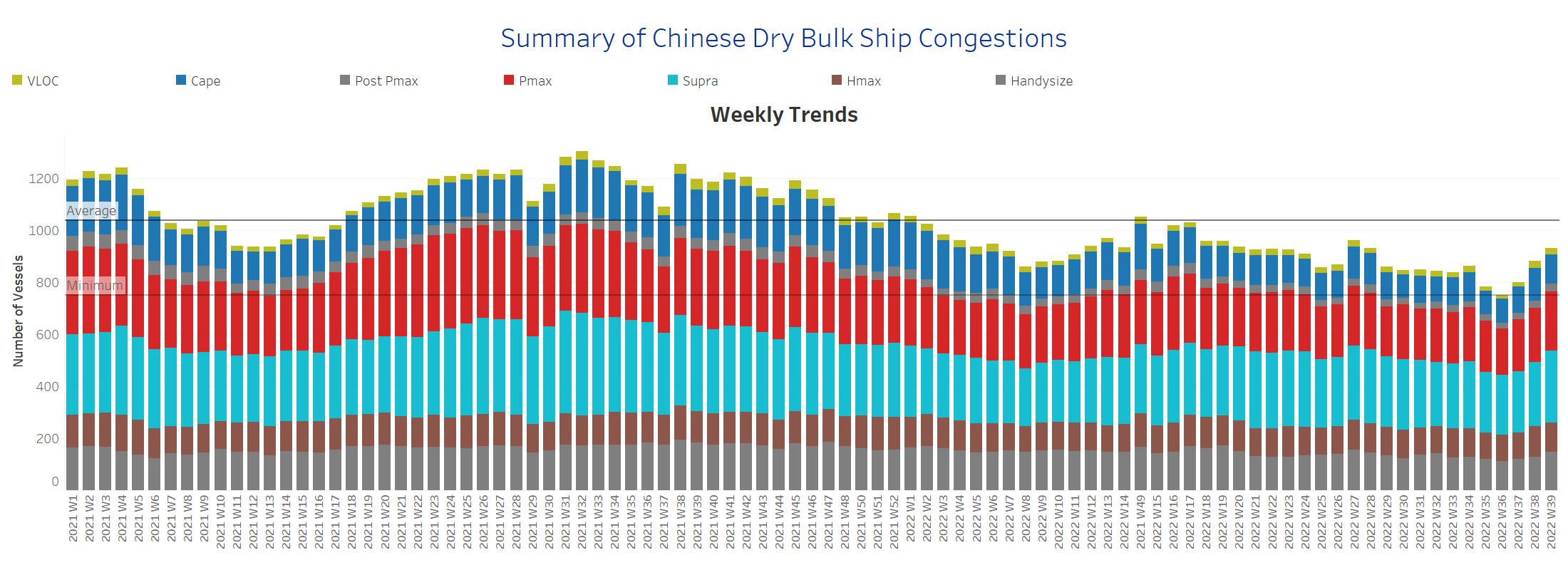 The number of congested vessels remains accelerated for the end of September, with a significant increase in the Panamax and Supramax segments.