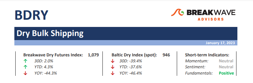 · Higher lows/higher highs could be on the cards this year – As dry bulk activity resumes following the Christmas holidays, traders are faced with the anticipated seasonal slowdown and thus falling spot freight rates across all asset classes. The spot market inadvertently affects future expectations, although in the last week or so freight futures prices have begun to show some much-needed optimism, pushing the curve into a contango and signaling increased enthusiasm about China’s import prospects once the Northern hemisphere exits winter. As we have stated before, we also expect better spot activity in the Spring, as China’s Covid wave recedes, the significant stimulus in the pipeline finds its way into infrastructure spending, and consumers in China employ some of the considerable savings accumulated during the past two years during when the restrictive Covid policies have limited their ability to spend, especially in real estate. Freight is a volatile asset class and thus steady increases or decreases are rare. However, we anticipate an environment of higher lows and higher highs as the year progresses, and although the averages will ultimately be determined by the extremes, overall, the opportunity set in dry bulk is still favorable for the ones who are willing to see past the daily fluctuations that are always the norm for this market.