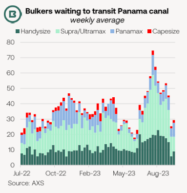 Due to low water levels, dry bulk carrier queues at the Panama Canal spiked in early August.