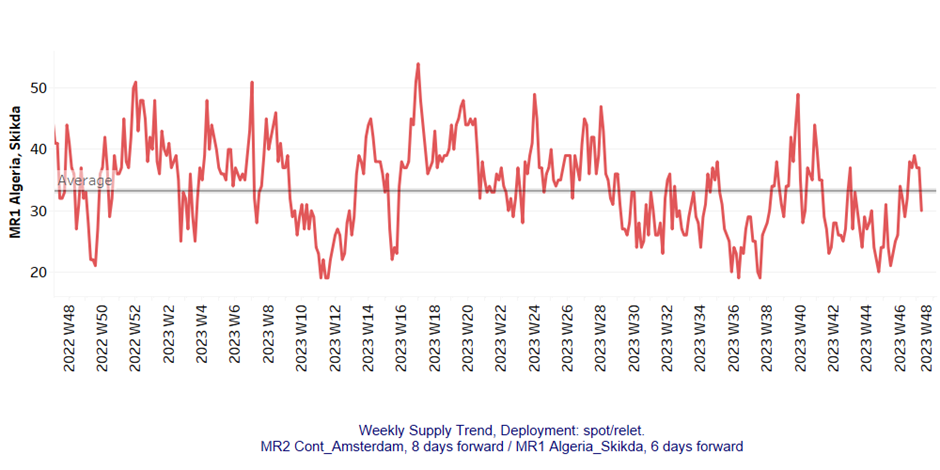 Clean MR1 Algeria Skikda: There were no signs of a late surge last week at the end of November, and the figure immediately fell below the annual average of 30.