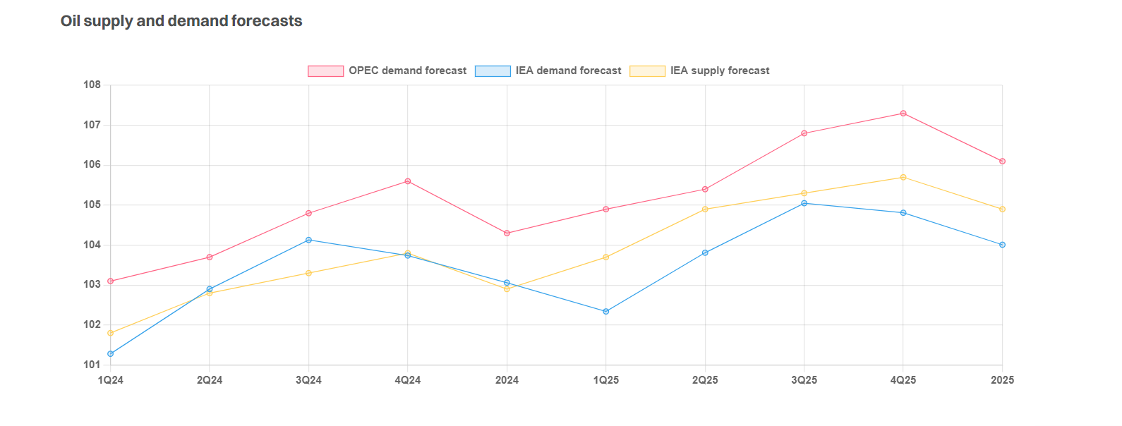 OPEC+ recently cut demand expectations to 2.11 mbd of growth in 2024. Even though we are well into the second half of the year this demand has not yet materialised, which may require further downward revisions to their projections and casts doubt on their 2025 forecast for a demand increase of 1.78 mbd. The IEA is more conservative and expects a moderate 0.97 mbd of demand growth in 2024, followed by 0.95 mbd in 2025.