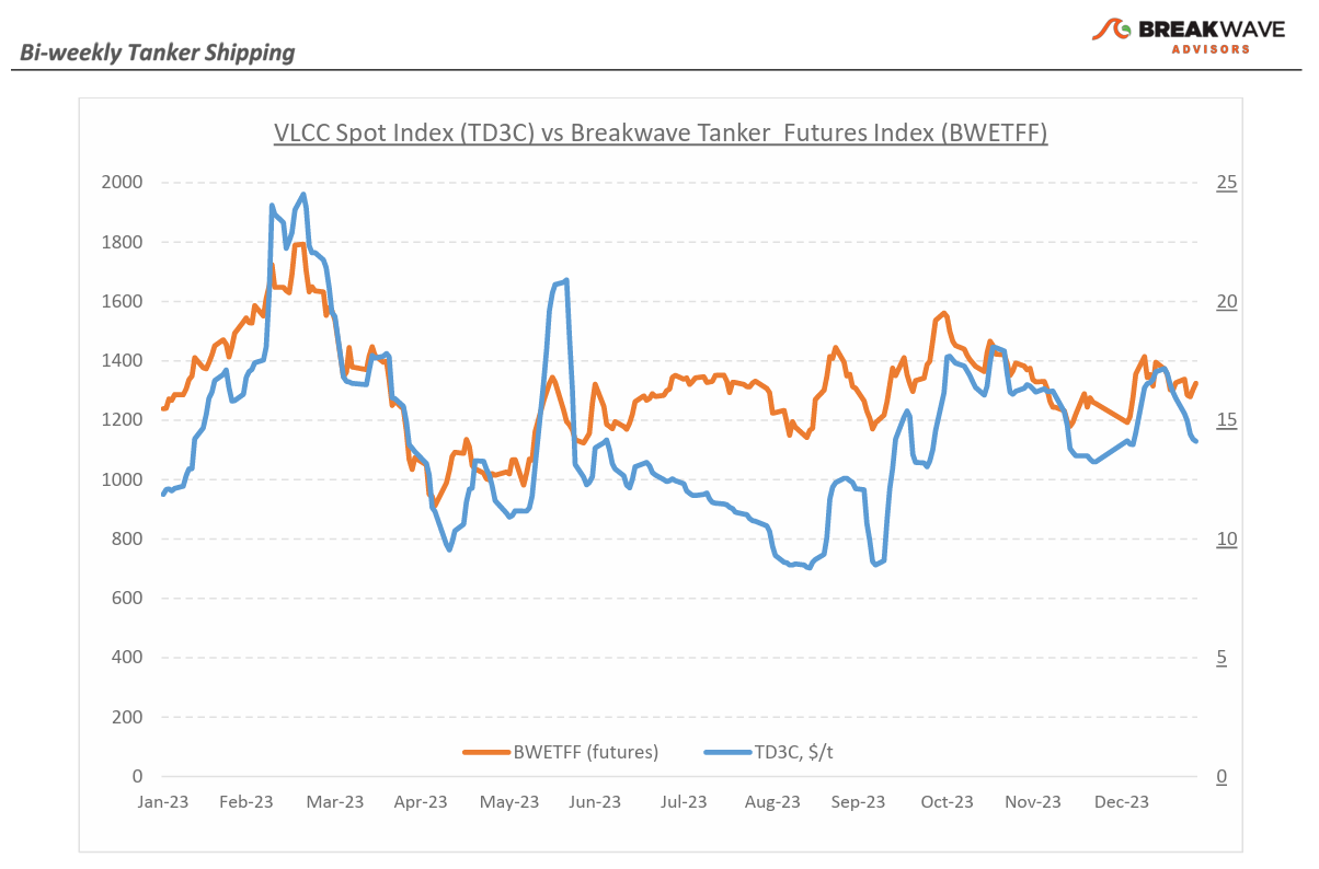 · Red Sea tensions continue to impact shipping as VLCC rates decline while clean tanker rates jump – As the month of January comes to an end, VLCC rates remain soft, even though tensions in the Red Sea have caused clean product tanker rates to surge. Europe-bound ship owners now face a tough choice: Sail through the Red Sea risking an attack on their vessels or take the longer, more expensive route around the Cape of Good Hope. The Red Sea hostilities have greatly affected clean tankers, a segment that historically has relied the most on the Suez Canal, and a large number for clean product tankers have now diverted away from the Red Sea and the Suez Canal. As a result of the longer sailing distances involved, freight rates for such vessels have surged to the highest level in three years. In the crude tanker sector, market data shows that only a handful of vessels have recently chosen the longer route around Africa's Cape of Good Hope instead of the Suez Canal, adding up to 45 days to the voyage. Rates for VLCC tankers traveling from the Middle East Gulf to China have softened but remain above last year’s comparable levels. The disruption in the Red Sea is not having a major impact on those Asia-focused routes as Europe remains a marginal buyer of Middle Eastern crude oil barrels. A similar trend of weakening rates is evident in the Atlantic market for the West Africa to China route. The potential for a supply squeeze in the crude tanker sector like the one in the clean segment is undoubtedly not evident despite the Red Sea tensions and it will depend on any geopolitical developments given the highly fluid situation in the broader region.
